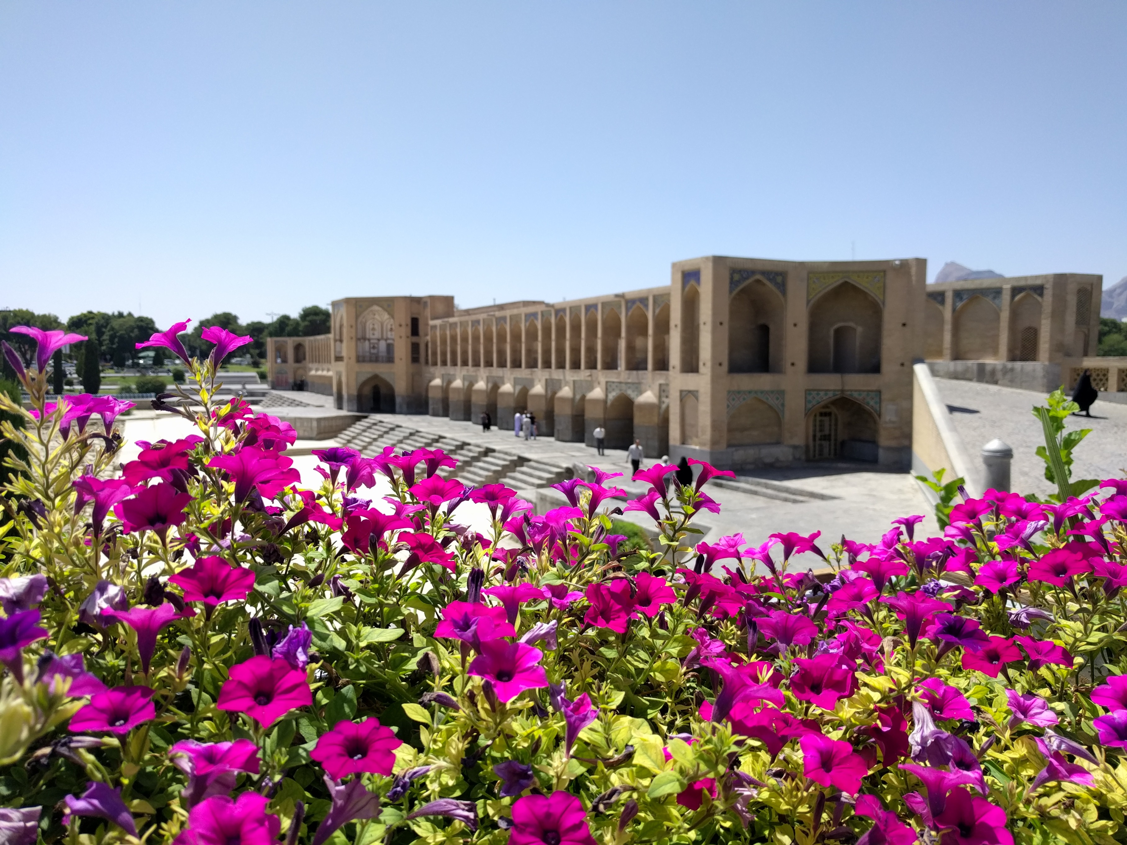 On the other hand khaju bridge; Shah Abbas the second who kept up with Shah Abbas the first in Safavid dynasty, built a bridge with a resort for himself to have something to show off and compete against Sio se Pol Bridge.