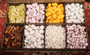 Noghl perse has various flavors and the most popular one is the one submerged in saffron.
